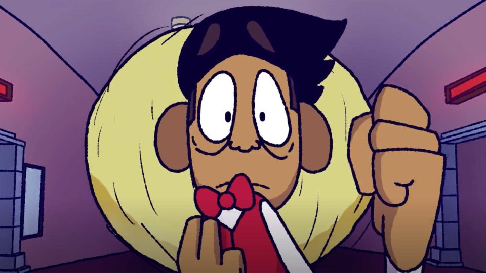 Midnight Showing is a wacky animated horror film following Angel, an utterly exhausted movie theatre usher, on the most frightening closing shift of his life.
