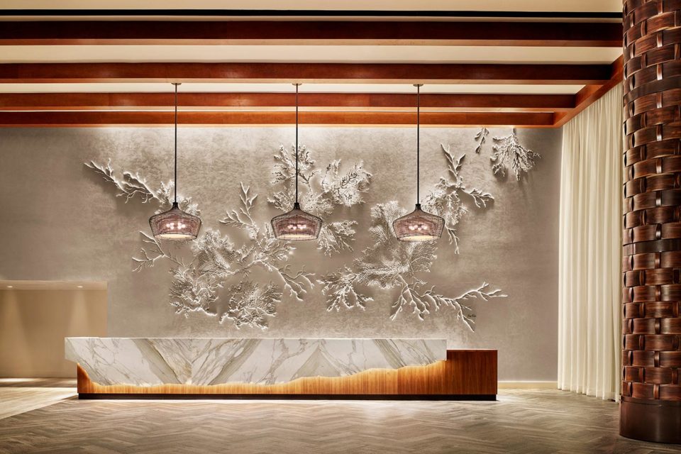 Sculptural illustrator Nina Helms conjures the world beneath the waves in her coral bas-relief for ‘Alohilani Resort.